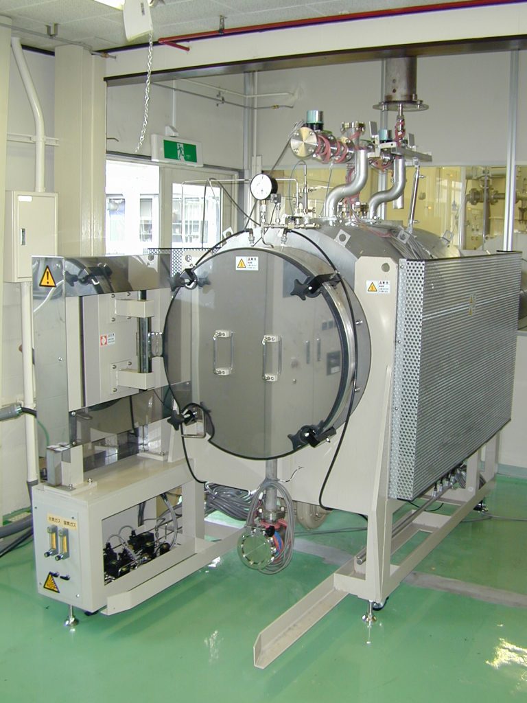 丸形前面開閉式マッフル雰囲気脱脂炉 2024.11.06 丸形前面開閉式マッフル雰囲気脱脂炉 本炉は、各種セラミックス製品・金属製品の脱バインダー処理を目的として製作しました。炉内は、マッフル風洞を備え循環ファンにより効率よく熱処理が行えます。前面開閉式を採用し非常に操作しやすく設計されております。